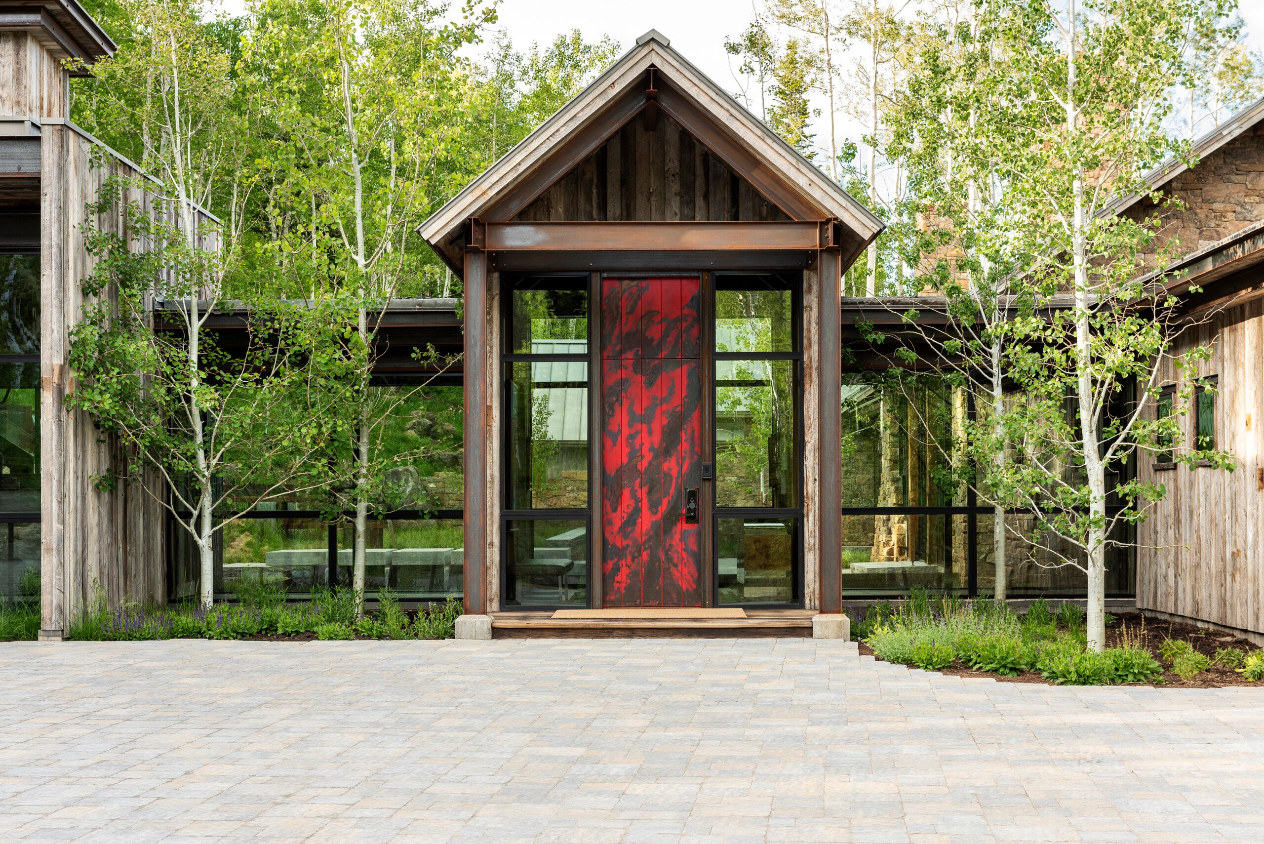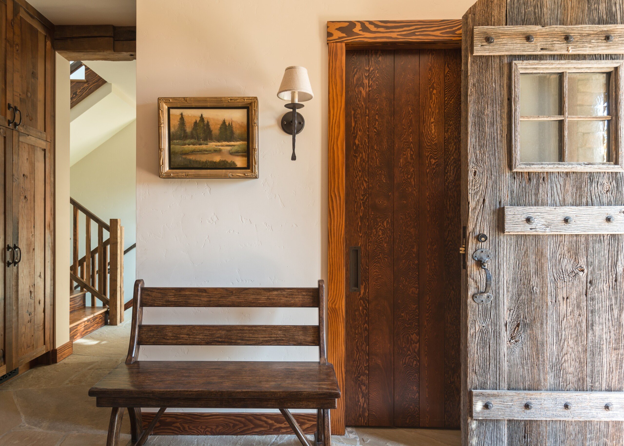 To make an indelible design impression on their sustainable legacy dwellings, JLF Architects in Bozeman, Montana, creates statement doors that are meticulously crafted to enhance the home. “A door is the first exclamation point and can serve as art in its own right,” says JLF Architects Design Principal, Logan Leachman. “The front door is an element of the home that is touched every day. A door of substantial thickness and weight, with carefully curated hardware that fits the hand, helps make an impression and draws visitors in before they enter the space.”