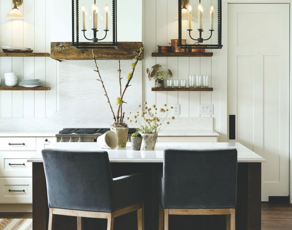 Set within the forests of Montana, a couple’s house uses reclaimed materials and antique finds to create a timeless aesthetic.