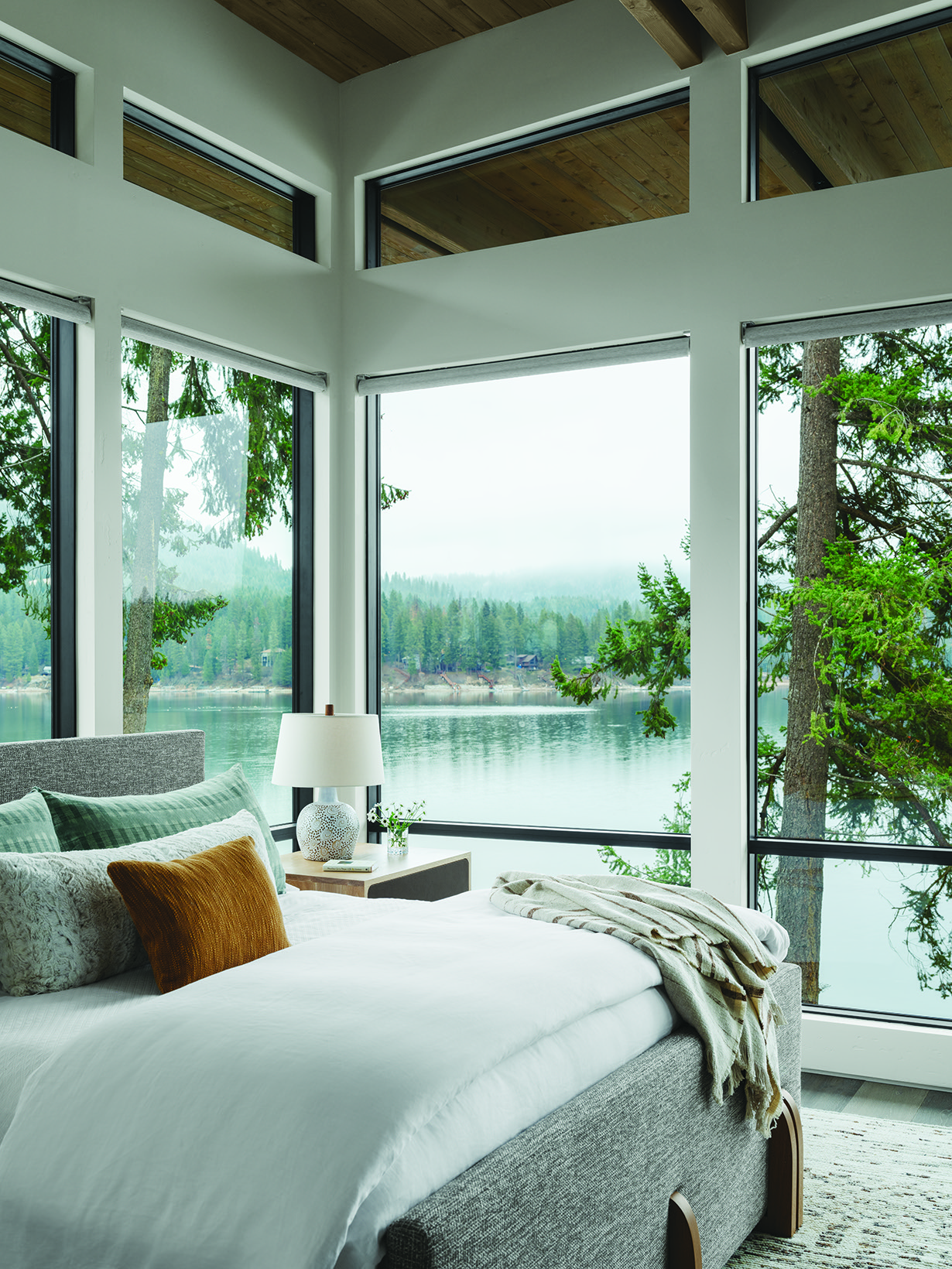 Denise Morrison of Orange County, California-based Morrison Interiors decided it was time to build a getaway for herself, her husband and her extended family of grown children and grandchildren. While visiting friends on Lake Hayden in northern Idaho, she saw a waterfront lot for sale. As it turns out, it was actually three lots for sale—plenty of room for a lakeside family retreat. The location had the right blend of open-air beauty and serenity she craved, so she purchased the lots.