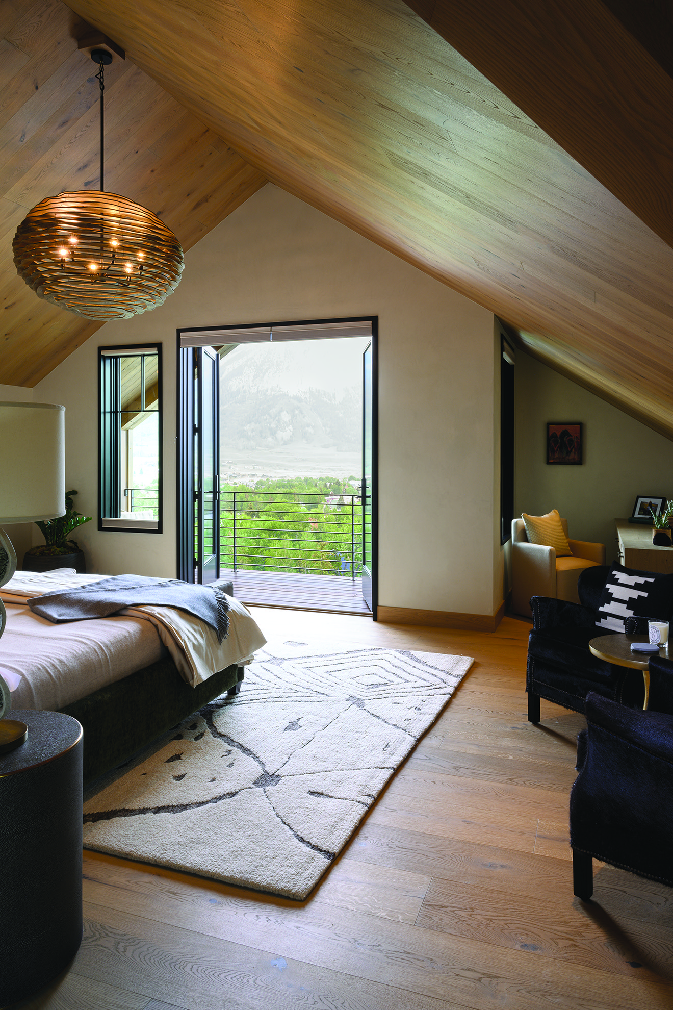 As a restaurateur and real estate developer, Hermanson (whose firm was behind Denver’s Populus hotel) had a working relationship with Sarah Semple Brown of Semple Brown, the architecture studio known for projects such as the Ellie Caulkins Opera House renovation in downtown Denver. He knew the firm would design a house that blends in with its surroundings. “Sarah and her team did a masterful job situating the home with a minimum of visibility from the town—with a true sensitivity to the landscape,” Hermanson says.